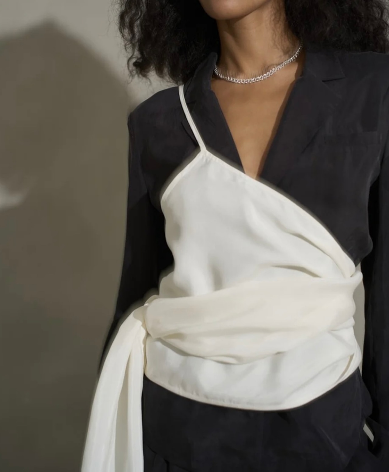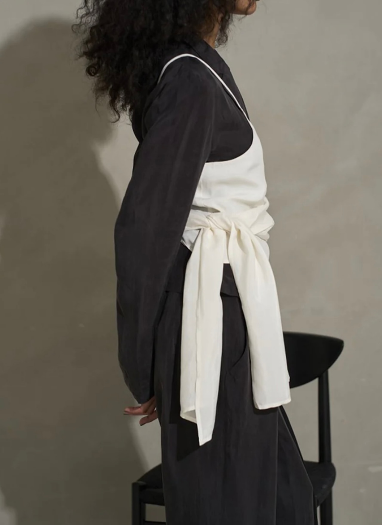 右肩だけストラップをかけて、自然なシワを寄せて後ろで結んだり、サイドで結んだり、ストールタイプのキャミソールです。Tシャツ合わせや、ジャケット合わせもオシャレで、ファッションが楽しくなるプラスワンアイテムです。